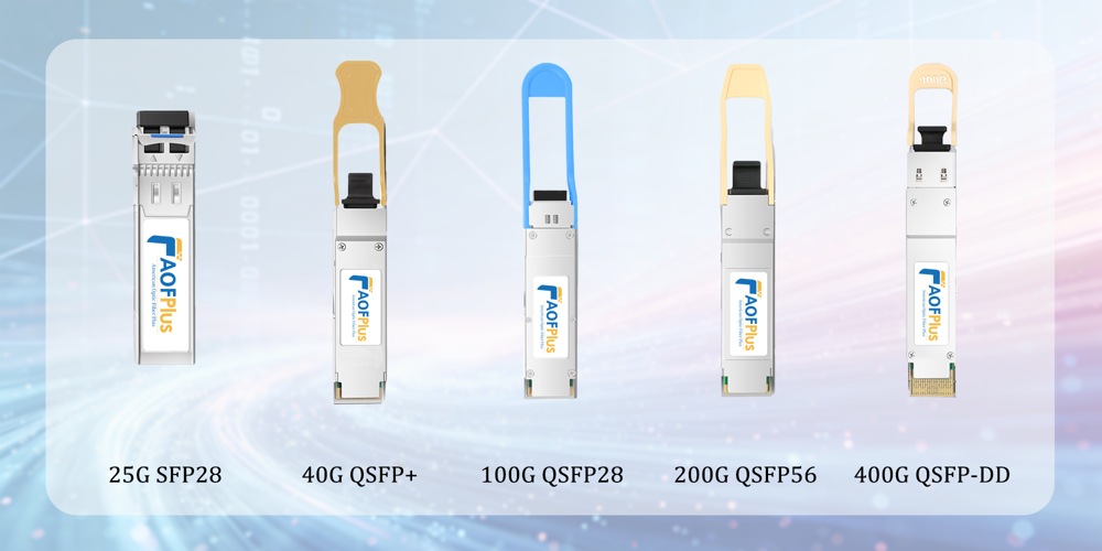 Available in speeds including 10G, 25G, 100G, 400G, 800G and 1.6T, 100G and 400G transceivers are mainstream for Date Center & Cloud interconnection, while 800G and 1.6T are used in high-end application for ultra-high bandwidth requirements.
