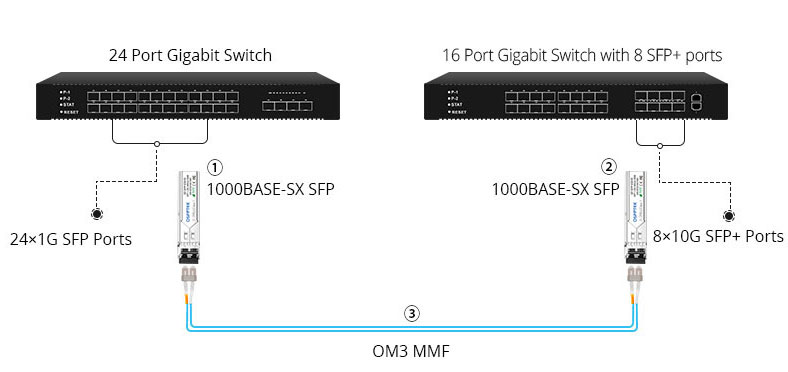 Depending on the type of fiber used, the transmission distance is also different. The transmission distance is 300 meters when used with OM1 multi-mode fiber, and the longest distance, when used with OS2 single-mode fiber, is currently 120 kilometers.