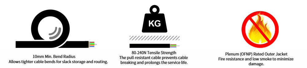 High grade optical fiber has excellent bending resistance and compression resistance, offering state of the art multi-fiber and mechanical performance.