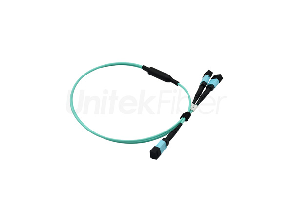 This riser-rated OM3 Laser Optimized Multi-mode MPO/MTP fiber patch cord can be deployed in any multi-mode 50/125 MPO/MTP network. OM3 is fully backwards compatible with existing OM2 or OM1 systems. This MPO/MTP fiber patch cord is a 24 cores MPO/MTP connector connected to 2*12 cores MPO/MTP connectors. The MPO/MTP connector's push-pull release mechanism makes it easy to engage and disengage, and its latch design also prevents the plug from becoming jammed when routing jumper cables.