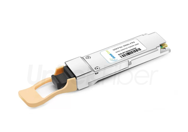 The transmission distance of 200G QSFP56 optical transceiver module can be divided into SR4, DR4, FR4, LR4, ER4, etc.