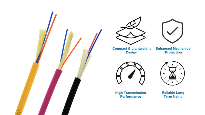 Indoor/Outdoor Fiber Optic Cables are the physical backbone of the enterprise network, and choosing the right type depends on your enterprise’s size, distance requirements, and bandwidth needs. The most common one is 0.9mm tight buffer indoor outdoor bulk fiber cable. Below is three type for enterprise network using: